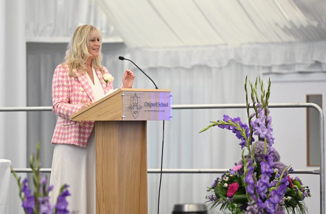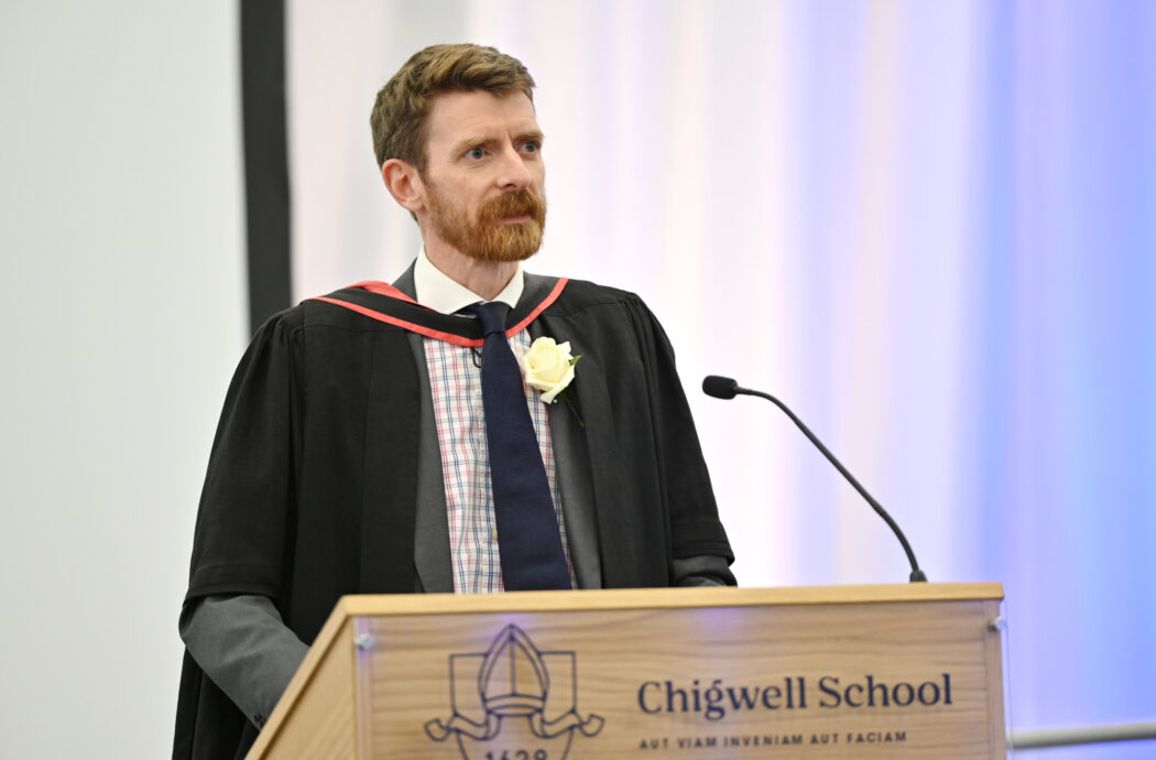 In the Sport & Wellness Centre, the formal proceedings began with a welcoming speech from Mrs Serrelli, Chair of Governors. Our Head, Mr Damian King, followed with a powerful reflection on his third year at Chigwell, celebrating the achievements of our pupils and the strength of our school community.